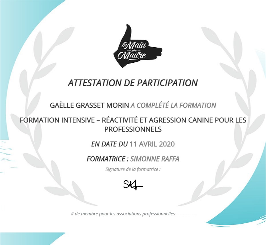De Main de Maître : Formation intensive « Réactivité et agression canine pour les professionnel » avec Simonne Raffa (De Main de Maître)
